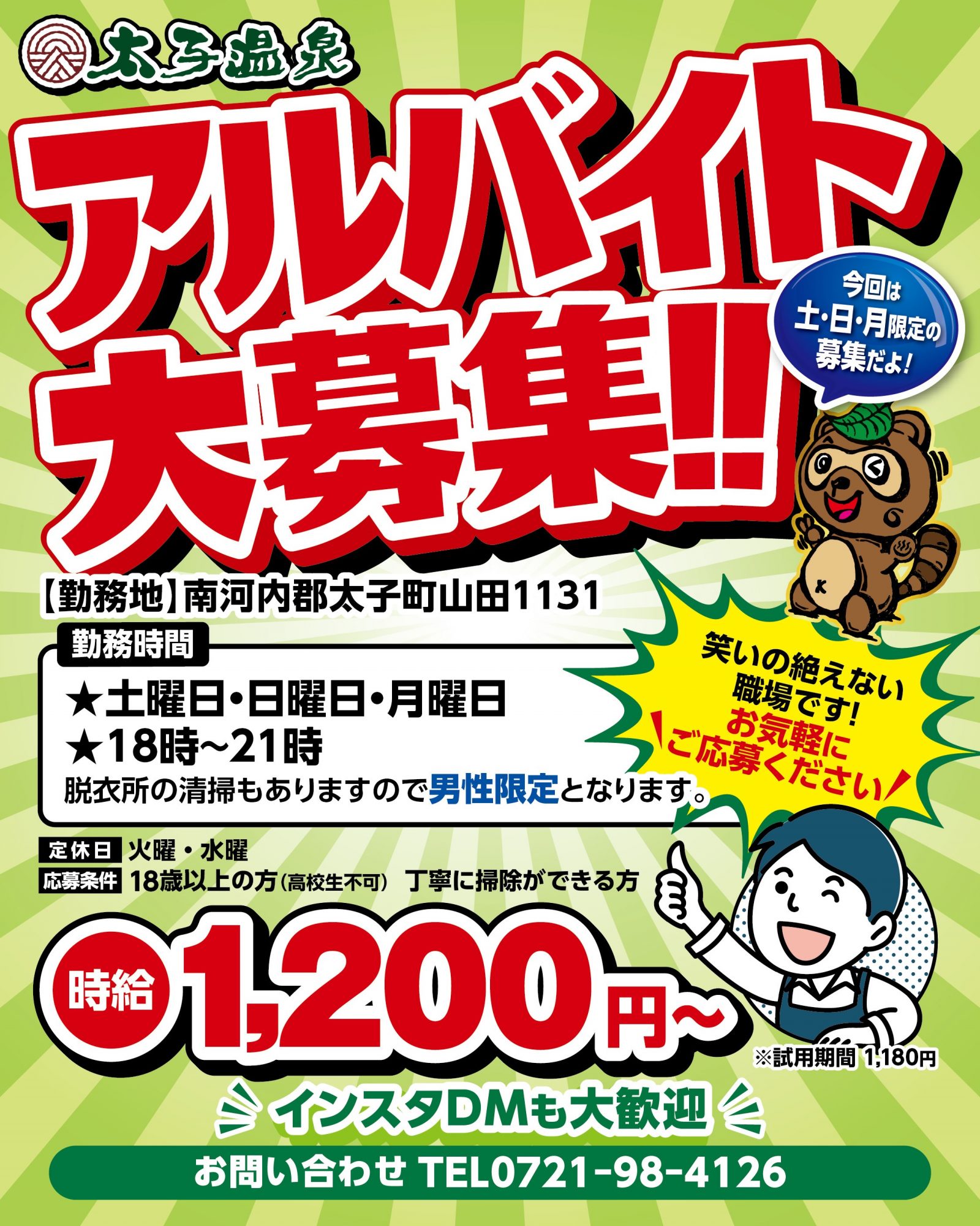 太子温泉 アルバイト急募です!